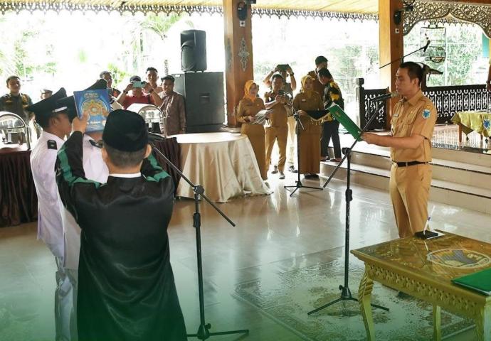 BATANGHARI, SJBNEWS.CO.ID - Bupati Batanghari Mhd. Fadhil Arief memimpin langsung pengambilan sumpah jabatan sekaligus melantik dua penjabat kepala desa di Serambi Rumah Dinas Bupati, Senin (8/9/2025). Acara ini digelar untuk memastikan roda pemerintahan di desa tetap berjalan meski terjadi kekosongan jabatan kepala desa.