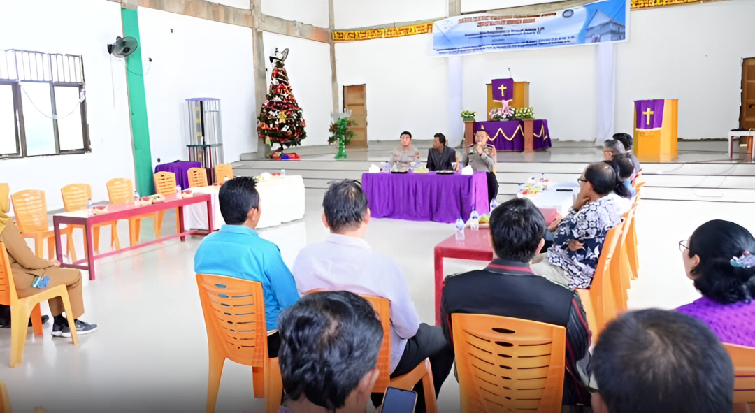 Dalam sambutannya, Dirbinmas Polda Jambi Kombes Pol. Henky Poerwanto menyampaikan apresiasi kepada pihak gereja yang telah menerima kehadiran rombongan Polda Jambi dengan baik. la menegaskan bahwa kegiatan ini merupakan upaya mempererat hubungan sekaligus menyerap masukan dari tokoh agama terkait situasi keamanan di wilayah tersebut.