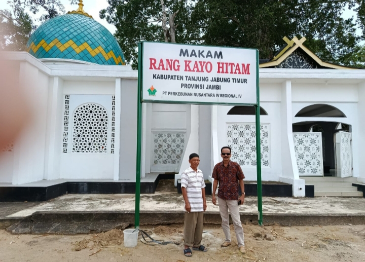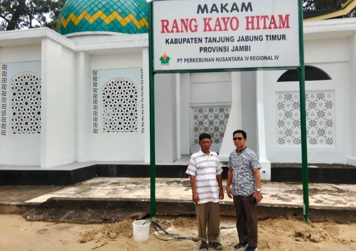 “”Alhamdulillah,,,plang papan nama Makam Orang Kayo Hitam sudah terpasang sebagai pengganti plang yang lama. Terima kasih atas perhatian dan kepedulian PTPN IV terhadap cagar budaya Jambi. Makam ini adalah Makam Raja Kerajaan Melayu Jambi, Orang Kayo Hitam,”” kata Hasan petugas yang penjaga Makam